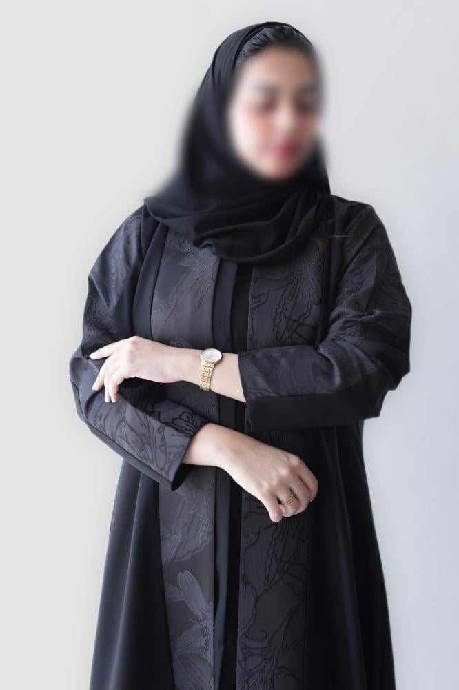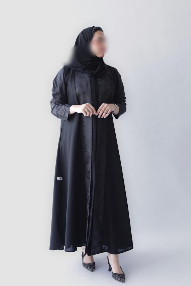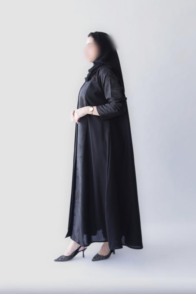 عباية رسمية أنيقة مصنوعة من قماش الكتان، تتميز بتداخلات من قماش الجاكار من الأمام، مع قفلة طقطق عملية. تصميمها الأنيق والعملي يجعلها خيارًا مثاليًا للإطلالات الرسمية والدوامات، حيث تجمع بين الراحة والأناقة في آن واحد.