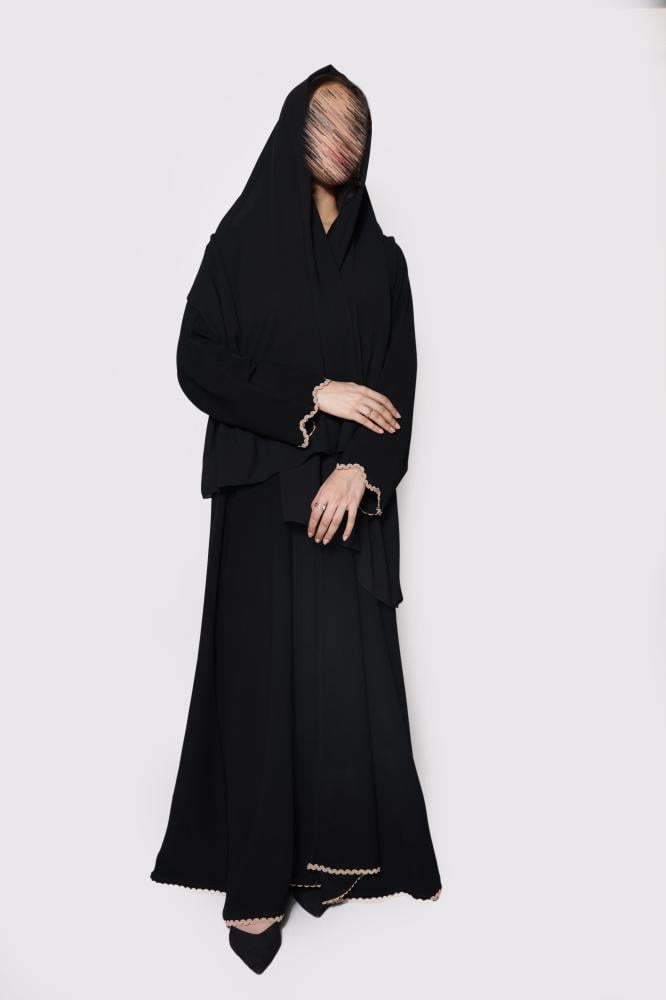 "القصة: نص كلوشالقماش : ملكي كوريالكم: ضيقالقفلة: لفالاضافات:كلفة بتحديد الكم واطراف العباية من الاسفل